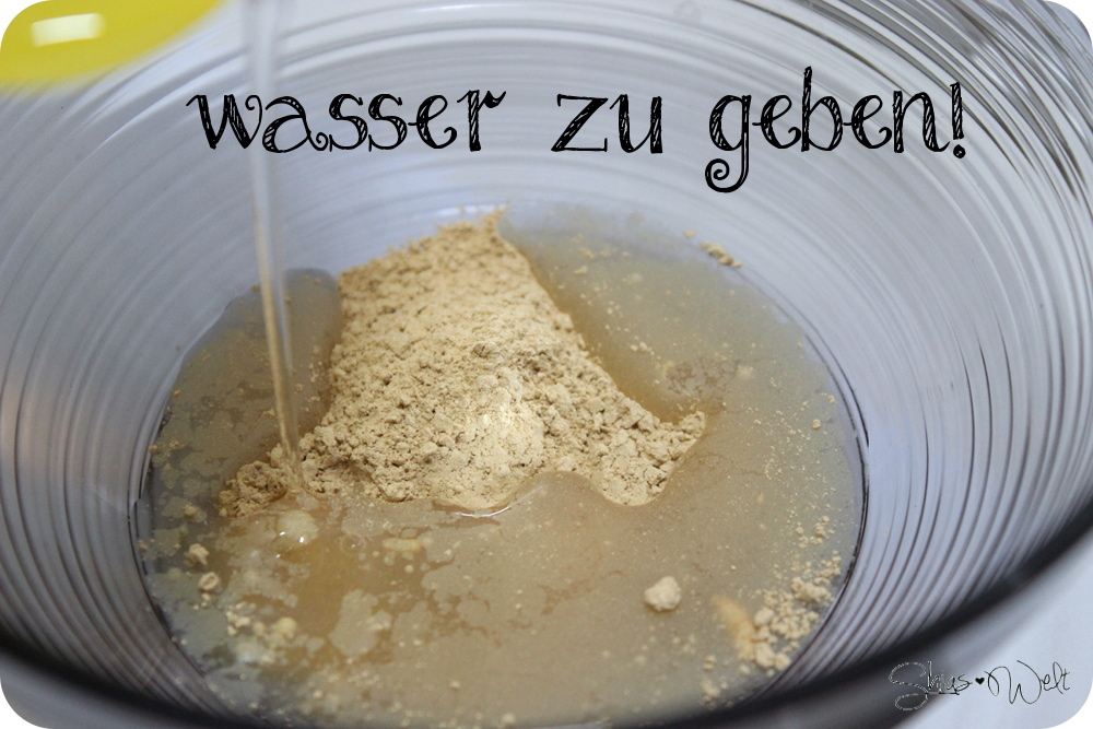 Man sollte wirklich nur wenig Wasser nehmen, da das Ganze sonst zu flüssig wird und es ziemlich rumsauen kann 😀