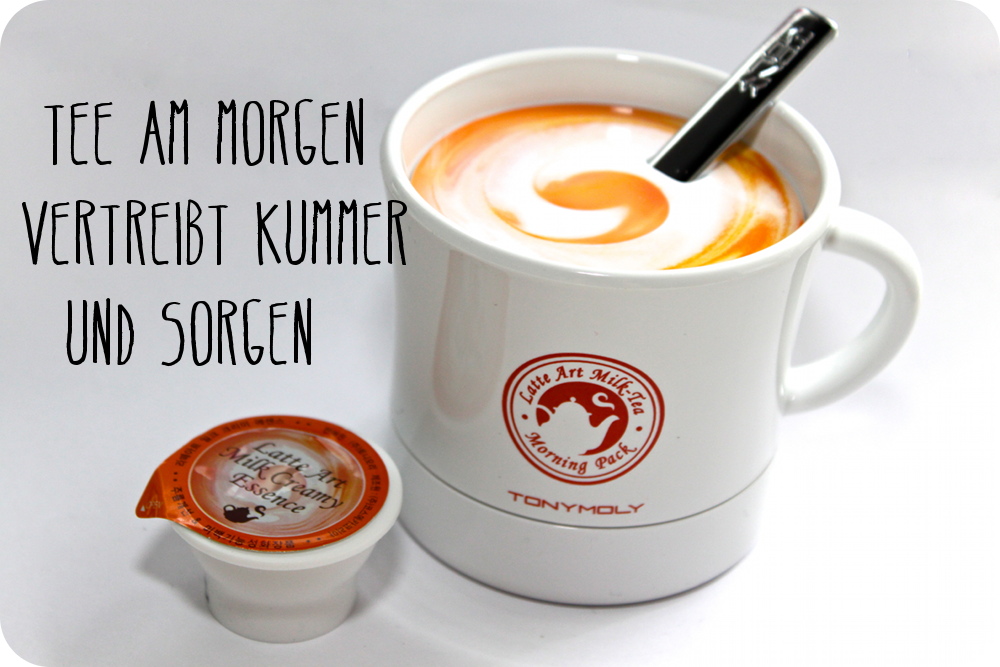 Hinter der Tasse Milk-Tea verbirgt sich ein Primer, das das Gesicht ebenmäßig und erfrischen soll.